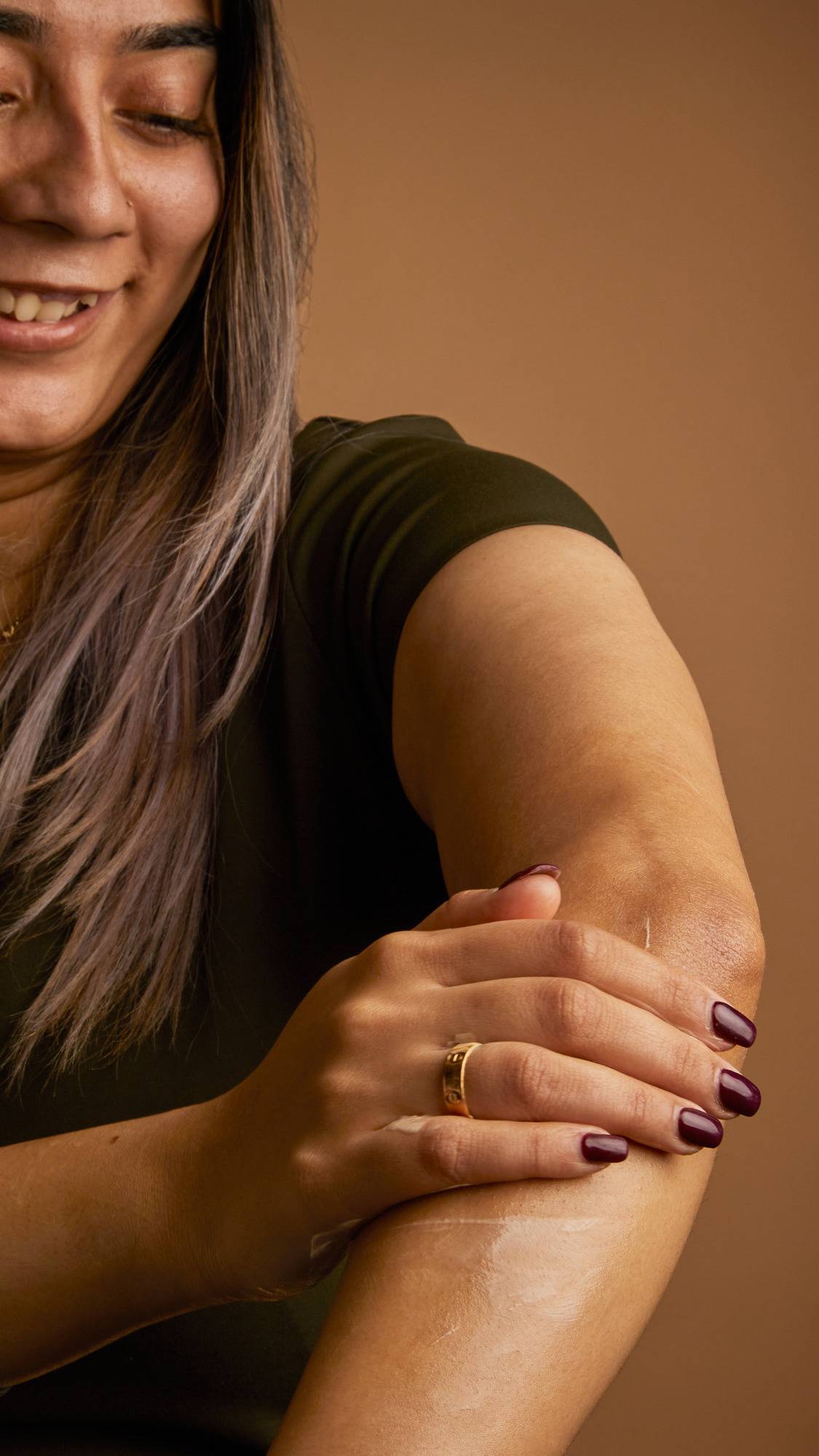 Smooth all over your body, taking extra care with your dry areas.